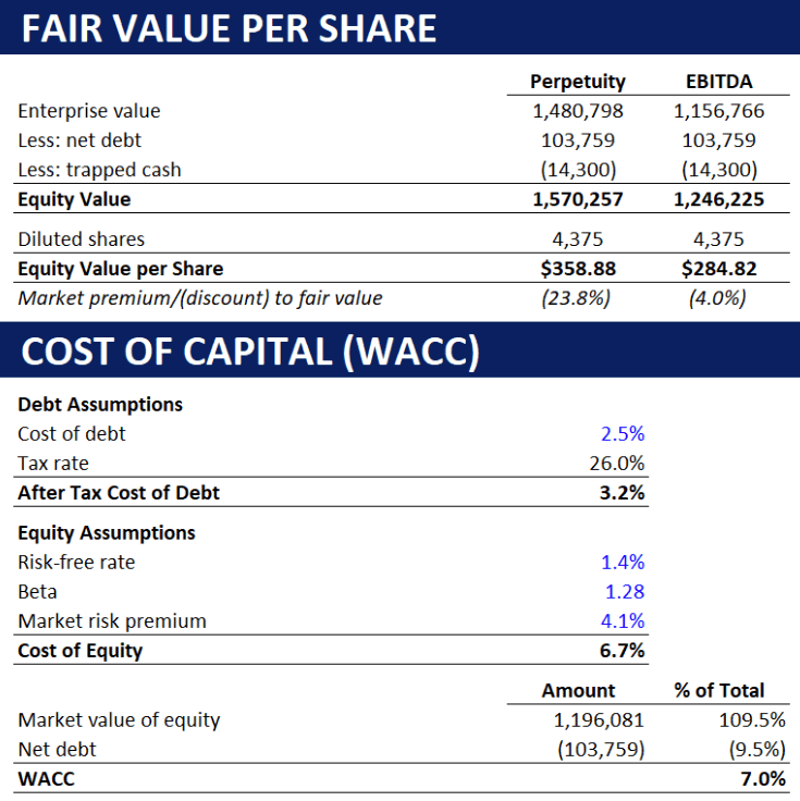 S = stock, S = c + X/(1+rfr)^t – p